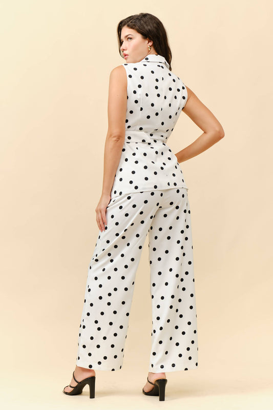 Polka dot belted vest and pants 2 piece set