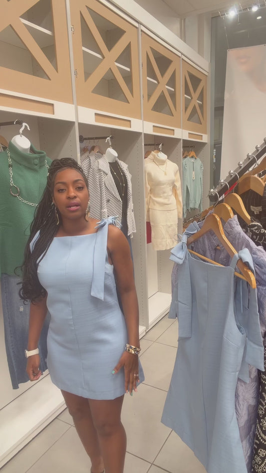 Shonda Unbalance Shoulder Shirring Mini Dress
