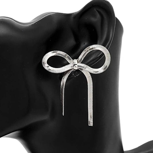 Metal Bow Ribbon Snake Chain Earrings