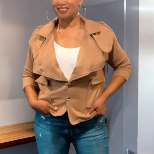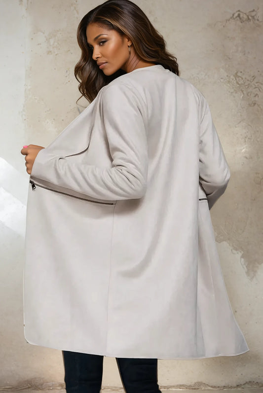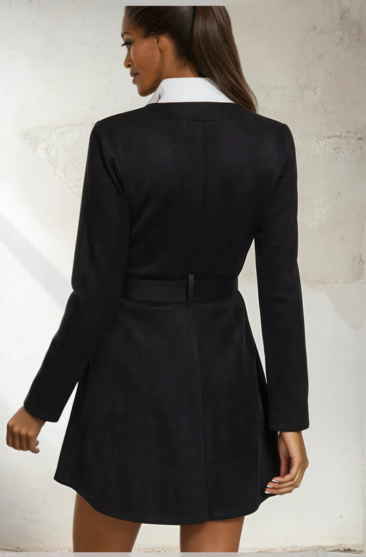 Briah V-Neck Zip-Up Belted Faux Suede Dress Jacket