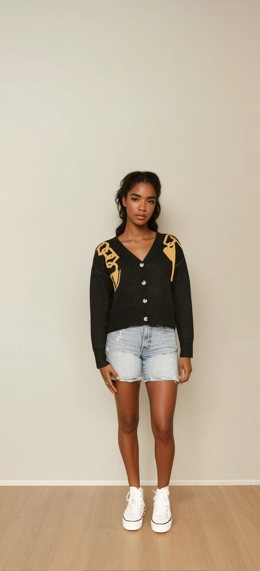 Velia Gold Accent Deep V-Neck Ribbed Cardigan
