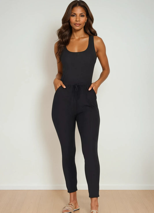 Kaylani Ribbed Sleeveless Drawstring catsuits Jumpsuit