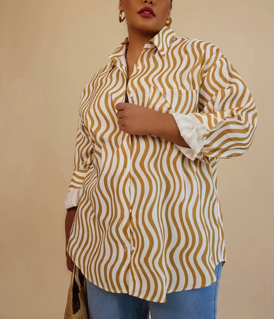 Leeza Stripe Smocked shirred oversized shirt blouse