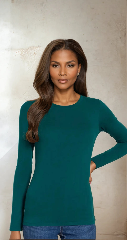 River Walk Long Sleeve Crew Neck Cotton Spandex Jersey Top