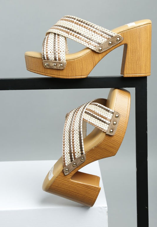 Finley Raffia High Block Heel Clogs