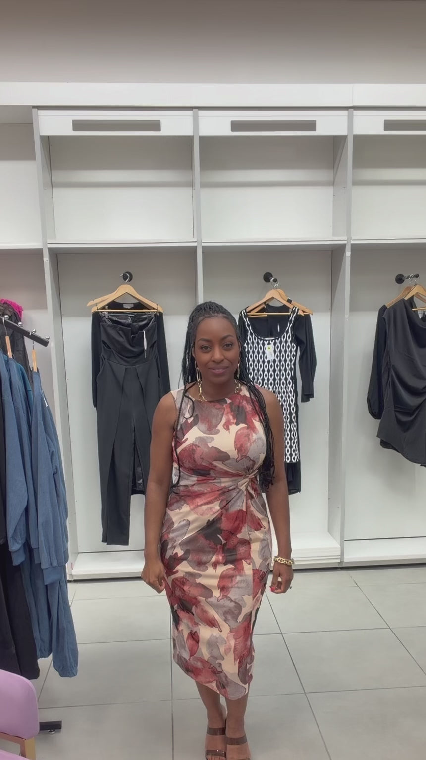 The Lovers Knot midi dress features a beautifully thoughtful design, with a twisted knot that creates a false empire waist. It smooths out the silkiest while cinching the waist, creating a flattering silhouette. This lovely boat-neckline, sleeveless dress is perfect in a business or semi-formal setting. Lovely and elegant.