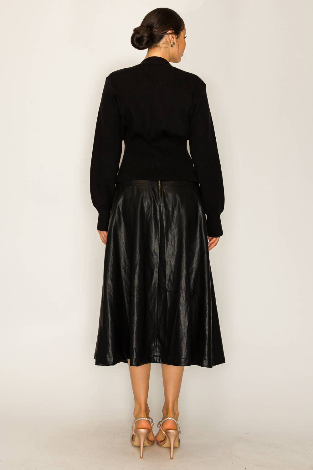Velia Gold Accent Deep V-Neck Ribbed Cardigan