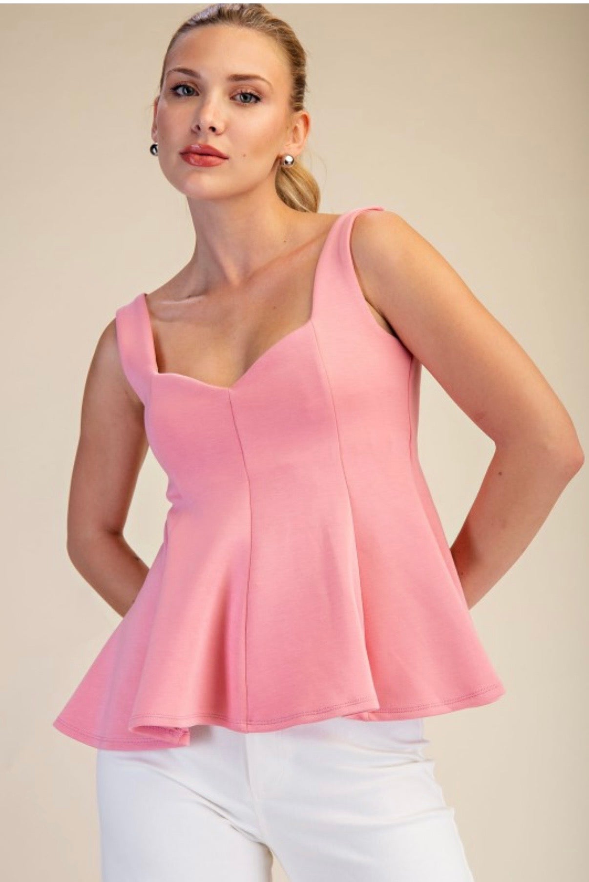 Scuba knit peplum stretch top.