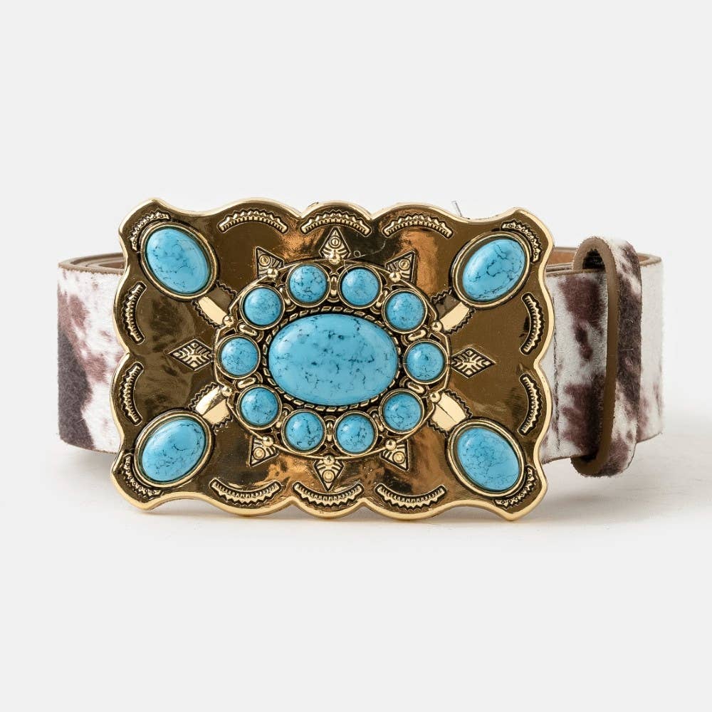 Western Style Turquoise Stone Large Ornate Buckle Belt