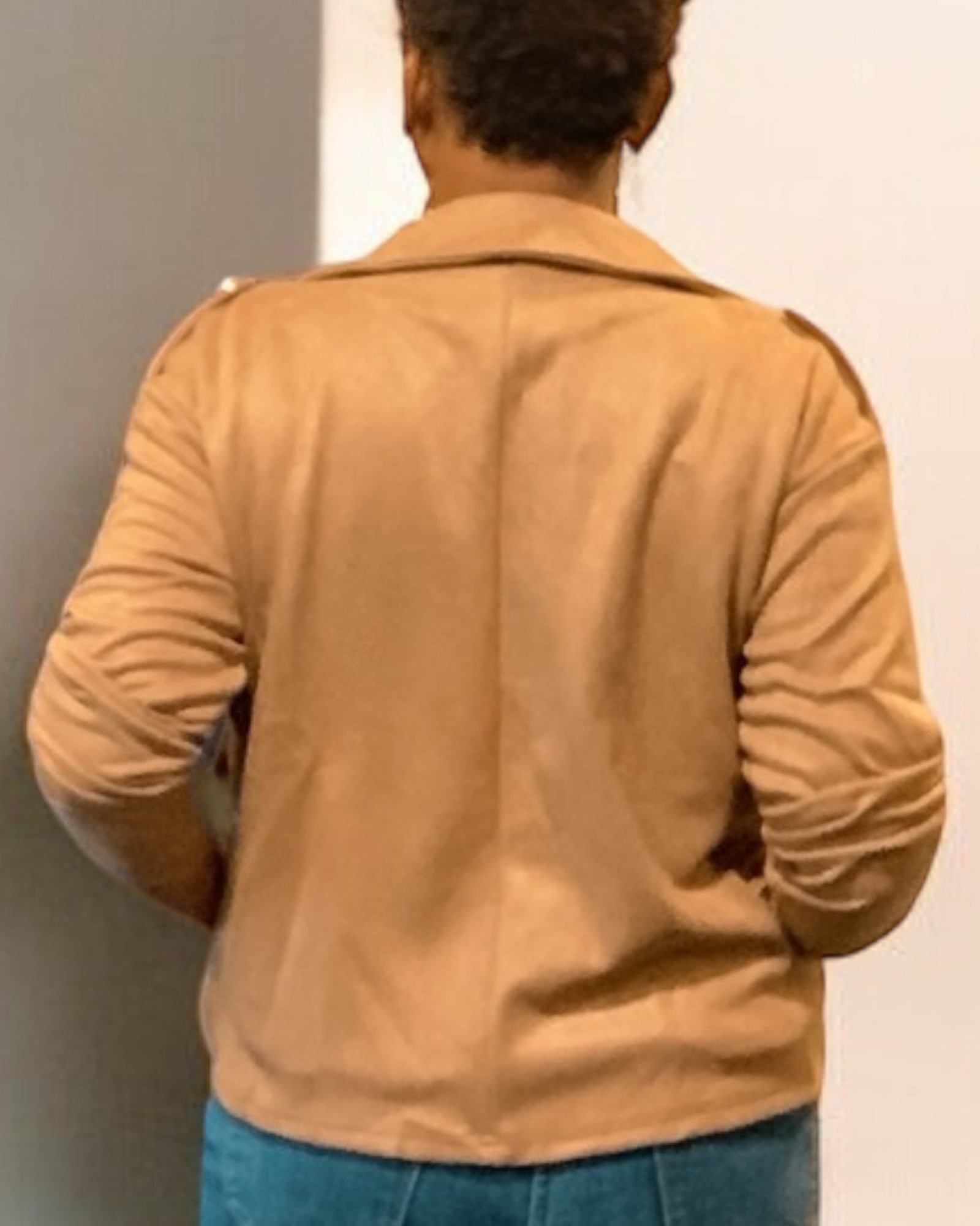 Vegan Moto jacket Step out in style this fall with our stunning vegan moto jacket, adorned with eye-catching gold detailing that’s sure to turn heads. This jacket is an essential addition to any wardrobe, blending edgy elegance with a commitment to cruelty-free fashion. Don't miss out on this standout piece! with gold detail is sure to grab the attention of everyone. Must have for fall.